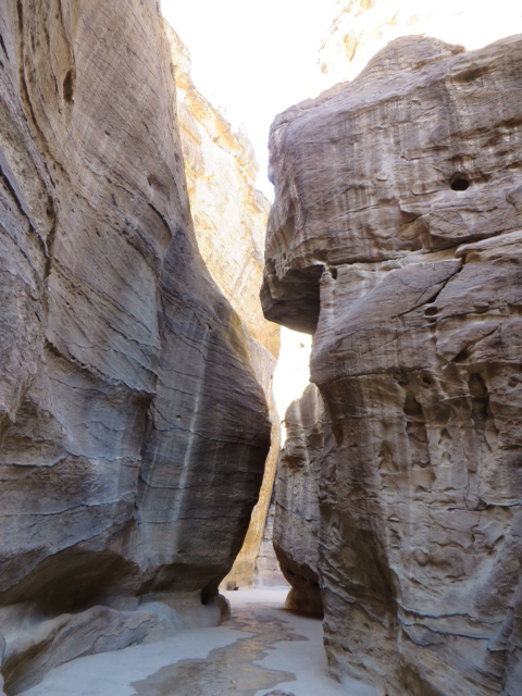 After a church service, Tim and the group visited Petra, the most famous archeological site in Jordan. This amazing city is carved right into the sandstone rock at the location. The text for the church service was "Enter through the narrow gate for the gate is wide and the road is easy that leads to destruction and there are many who take it. But the gate s narrow and the road is hard that leads to life and there are few who find it." -- Matthew 7.13-14 The entry into Petra is called the Siq, and as this picture shows, the text was remarkably appropriate.